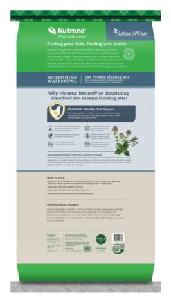 NatureWise Nourishing Waterfowl provides easy to digest, natural waterfowl nurtrition in a hardy floating bit for less feed waste.