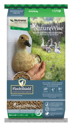 NatureWise Nourishing Waterfowl provides easy to digest, natural waterfowl nurtrition in a hardy floating bit for less feed waste.