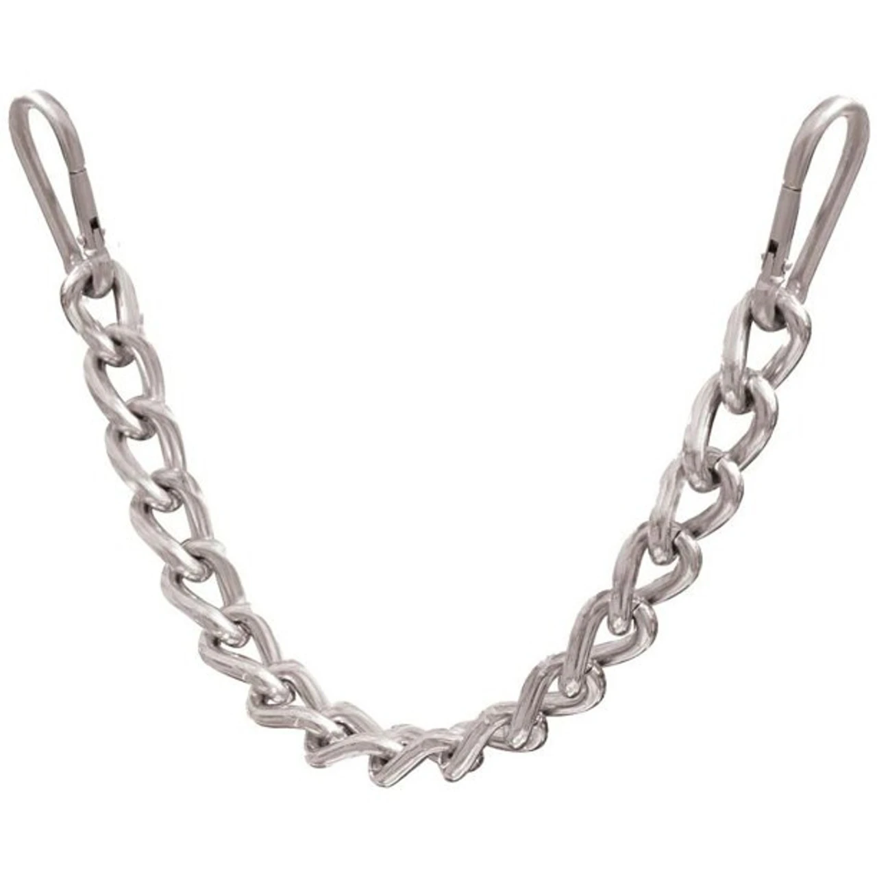Curb chain with clips SilverCS-200 Help keep your horses bit steady by using the Curb Chain with Clips. This curb chain will help to keep any bit in place while riding. This curb chain comes in silver, which will go with any bit and bridle that your horse uses. Its comfortable fit and clip attachments make it the ideal curb chain for any horse!