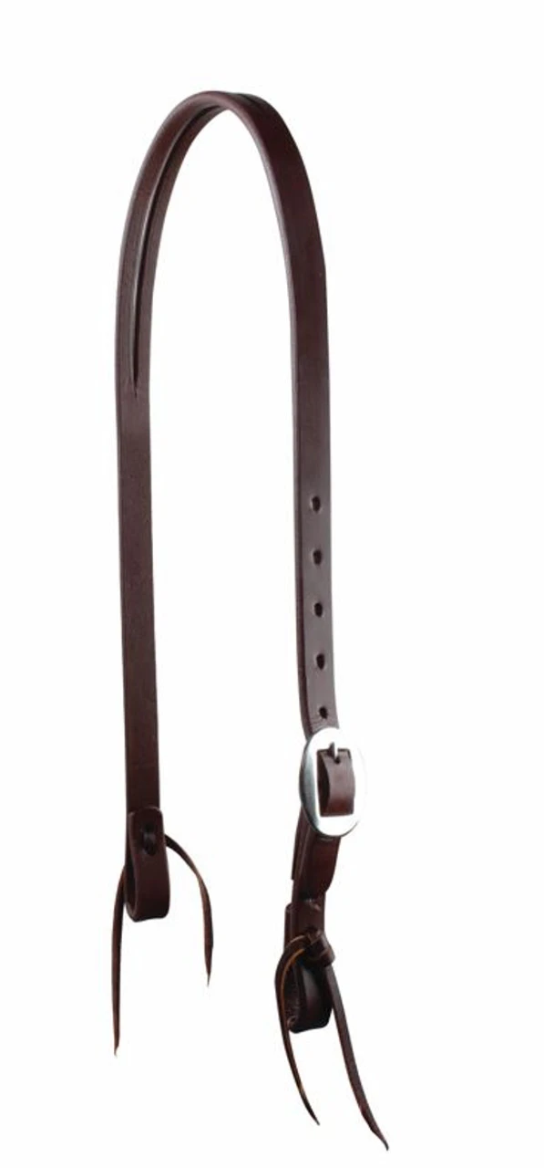 Single-ply 12 oz plus harness leather with stainless steel single adjust buckle. Heavy oil with tie cheeks. 3 sizes to choose from 5/8″, 3/4″, and 1″ Buckle holes are oval for easy adjustment. Made in the USA.