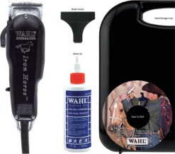 Wahl’s Iron Horse medium duty equine clipper kit is perfect for trimming the bridle path, fetlocks, face, and ears – and can even tackle light body clipping! The Iron Horse’s body has been built out of aluminum, creating a virtually indestructible impact-resistant clipper. The adjustable taper lever makes it easy to adjust between the 3 blade sizes – #30, #15, and #10.